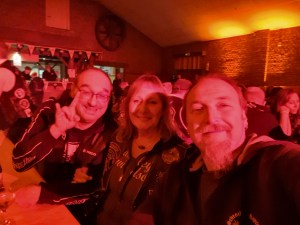 Sur place nous sommes accueillis avec une sangria de la mort qui tue en apéro suivie d’un délicieux repas. Quel plaisir de retrouver ses amis de partout en Belgique et même du sud de la France avec Fredo du Var-West Toulon Chapter France qui, pour l’occasion, fait l’expérience des traditions grévistes de Ryanair à Charleroi 😉
