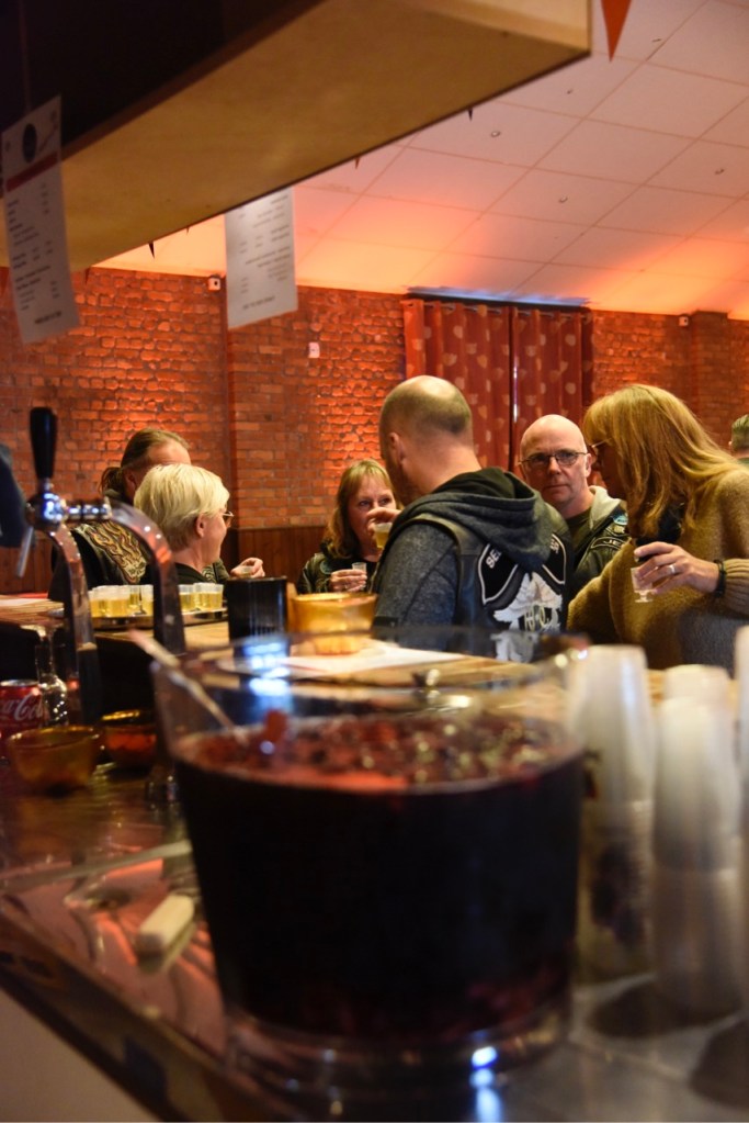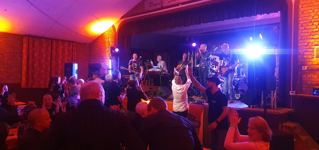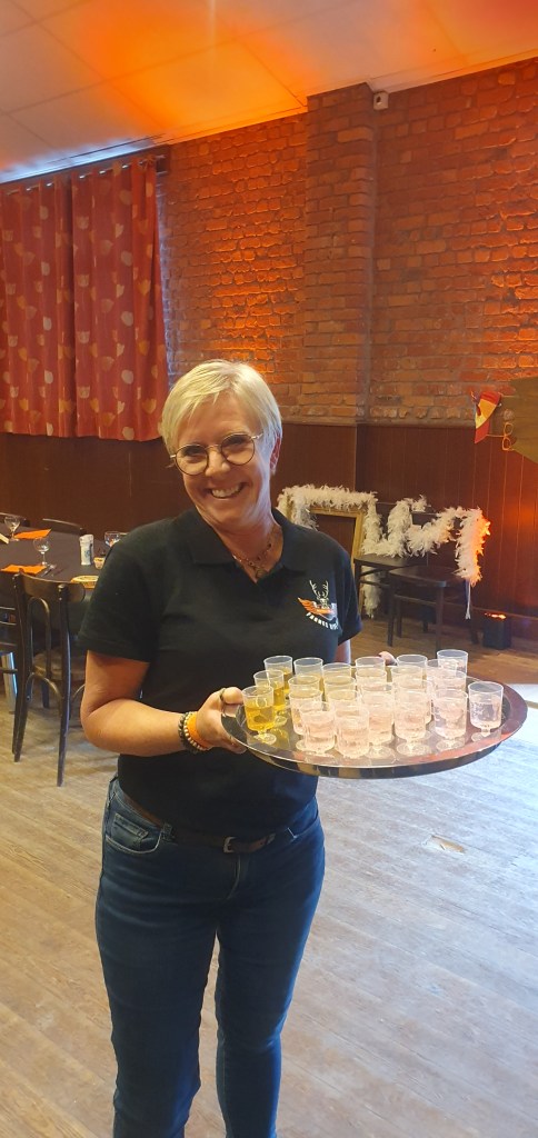 Après une bonne douche bien chaude, nous reprenons la navette pour la salle de Ster où nous attendent un apéro-dégustation de Gin de Namur »Des Natèfs di Nameur » servis avec le sourire par Amélie et un super BBQ. La soirée se clôturera avec un bon groupe de rock venu du Nord.