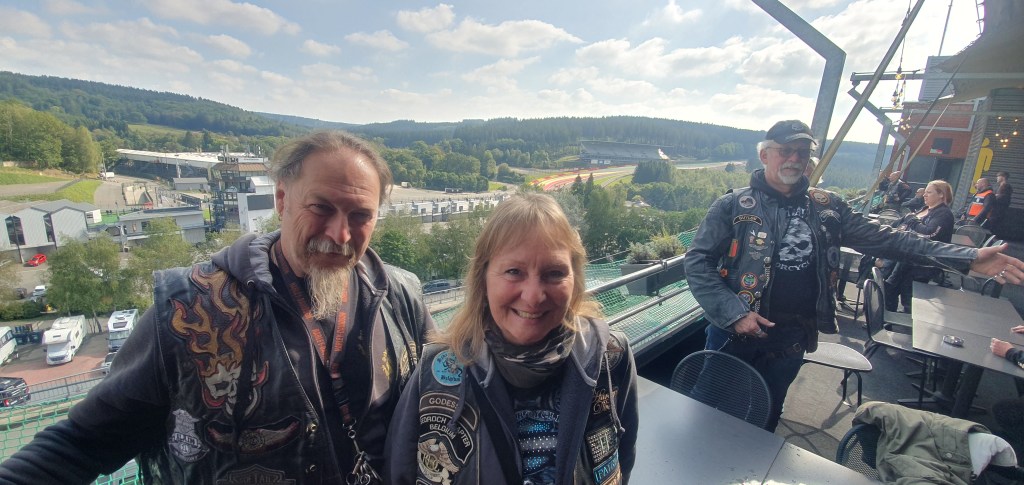 Après avoir été relayés à la terrasse par le Ghent Chapter, nous reprenons la route en direction de l’hôtel à Francorchamps mais perdrons notre ami Charles « Le Lynx », victime d’une crevaison à la sortie de Remouchamps.