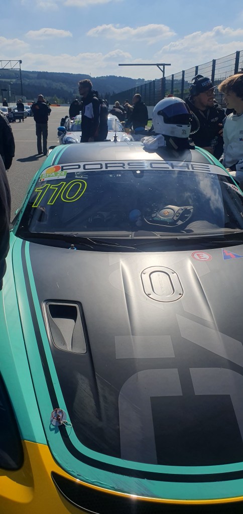 Une compétition Porsche a lieu et, après avoir visité le saint des saints et pris un verre offert par le big boss du circuit sur la magnifique terrasse 180° de laquelle on peut observer la quasi totalité du tracé, nous sommes invités à parcourir la ligne de départ lors de la mise en place de la course suivante. Une expérience fabuleuse.