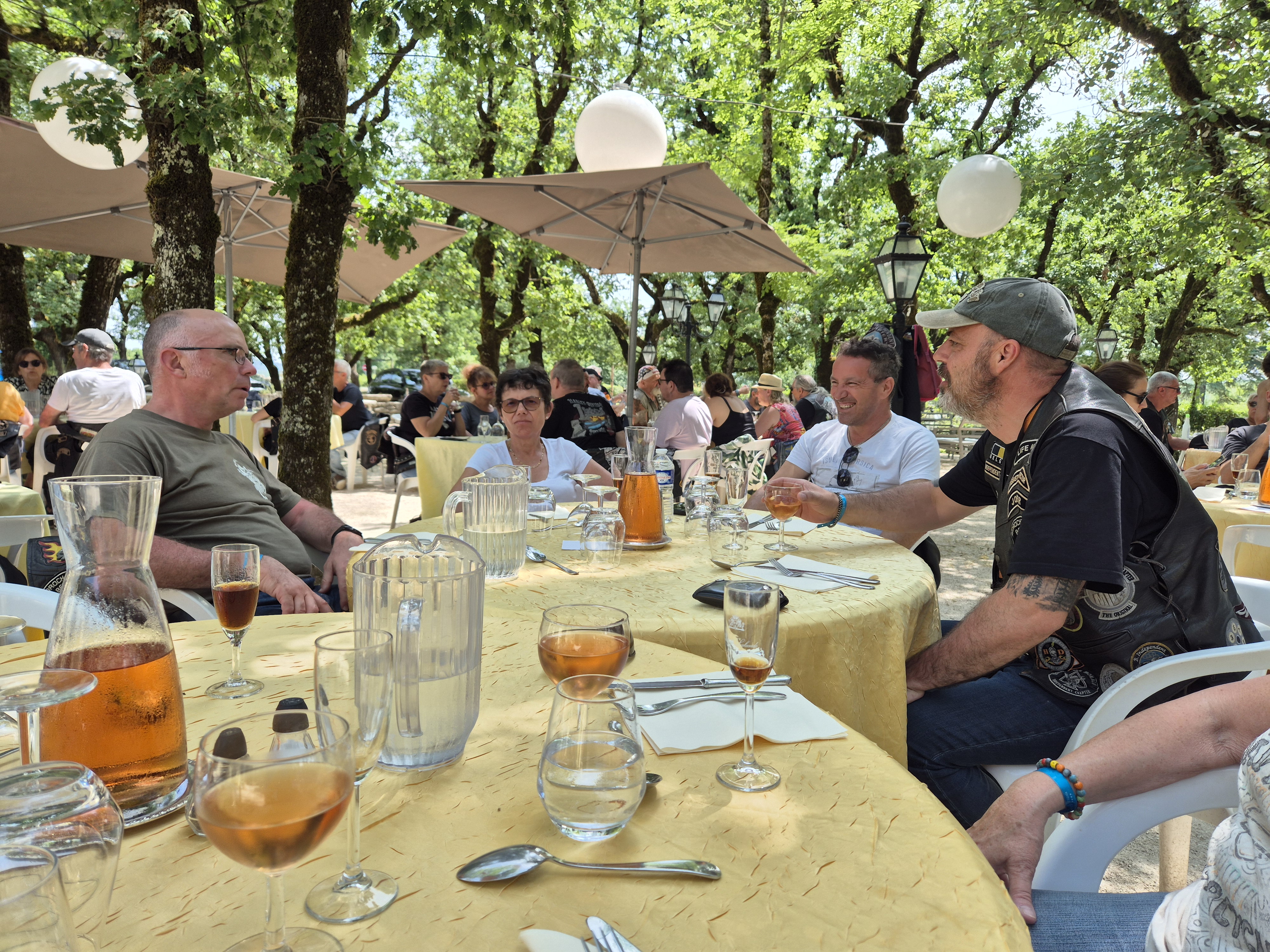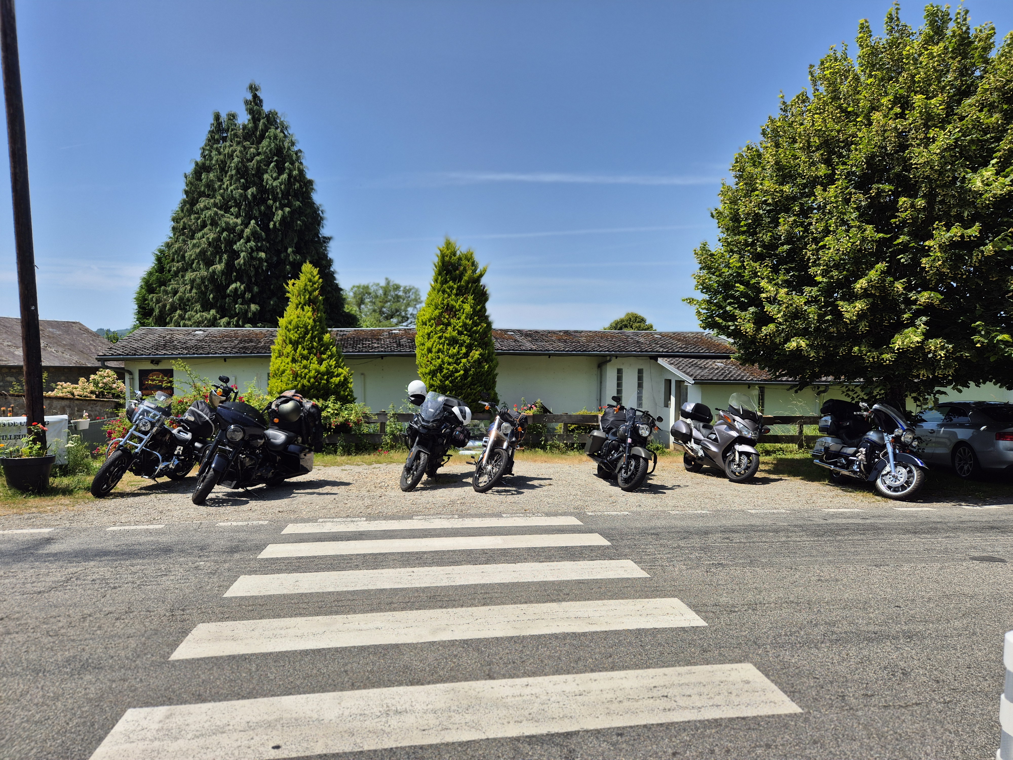 Nous quittons Bourges sous le soleil vers notre destination finale. J’ai prévu de belles routes mais la traversée du Parc naturel régional de Millevaches en Limousin s’avère moins agréable que prévu. Des travaux sur la route, surtout les tas de graviers disséminés ça été là, principalement dans les virages, cassent notre moyenne et, après une sympathique pause repas à l’Auberge du Bois de l’Etang, nous finissons par rejoindre sans trop de détour l’autoroute A20, afin de rattraper le temps perdu et surtout d’arriver à Payrac avant la fin de l’apéro.