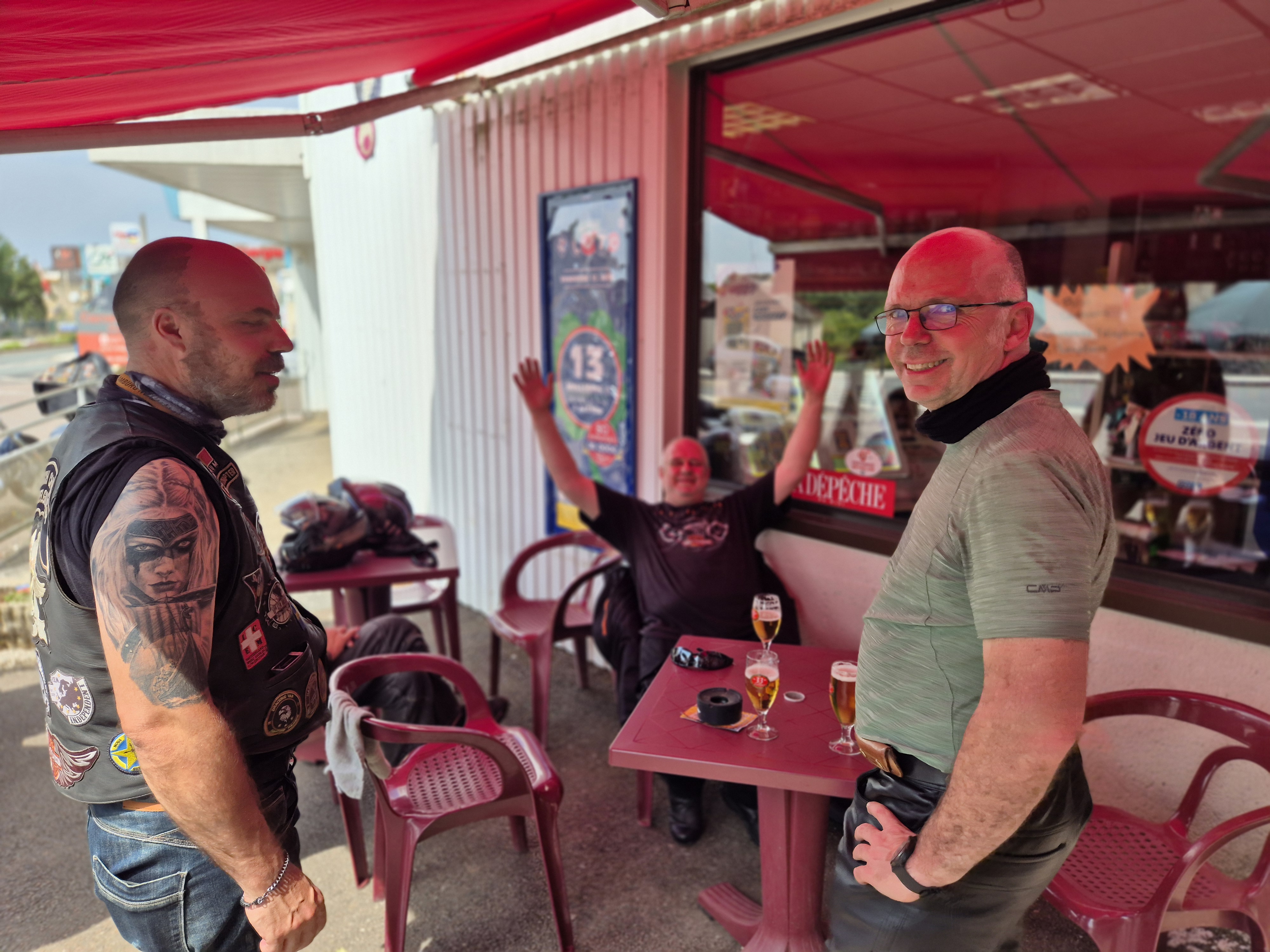 Après un dernier plein et une petite pause au bar-tabac Chez Nomi à Cressensac où nous sommes rejoints par nos amis du Genabum.